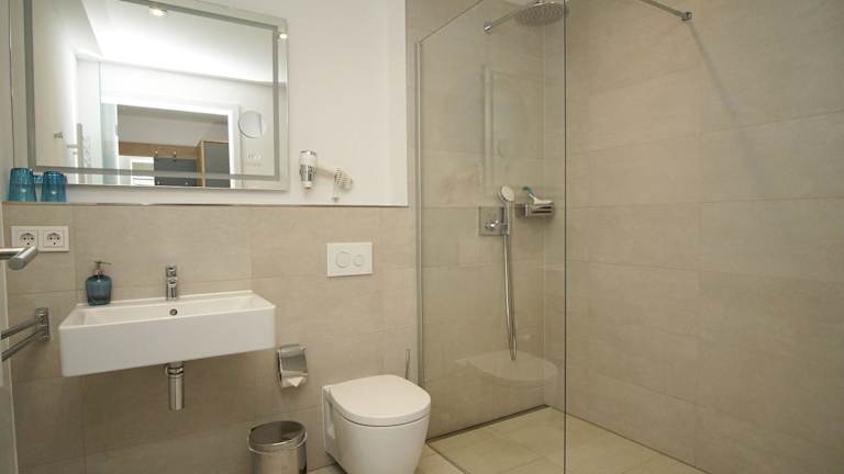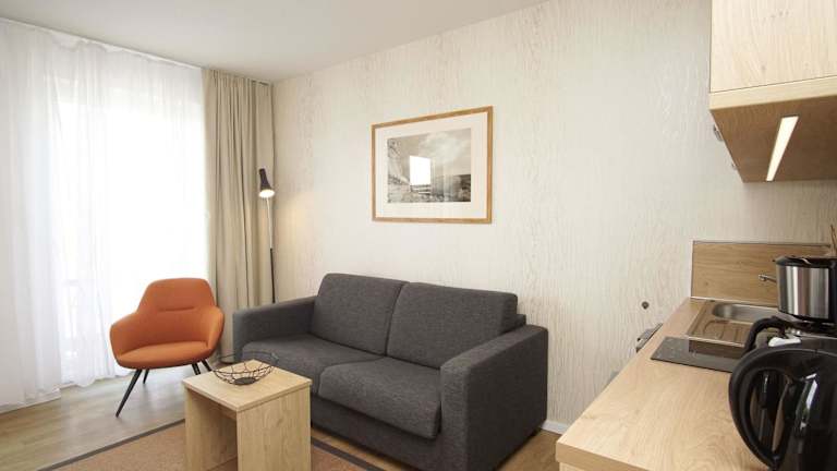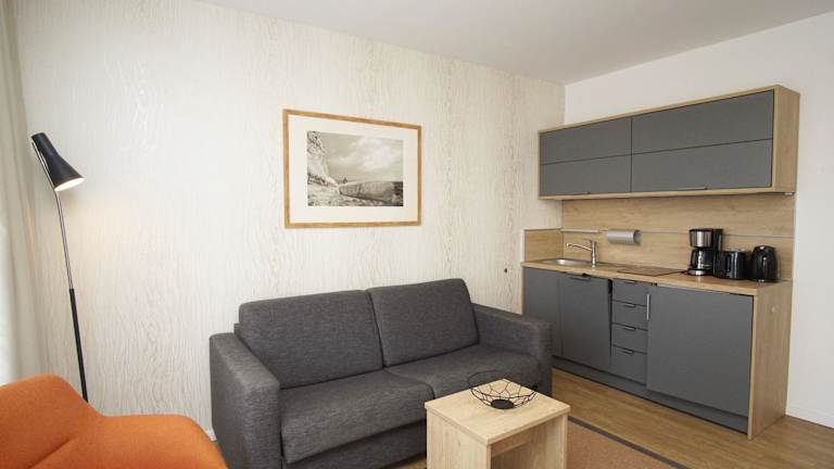 Die Ferienwohnung verfügt über ein Schlafzimmer, ein Wohnzimmer, eine voll ausgestattete Küche mit Kühlschrank und Wasserkocher sowie ein Badezimmer mit Dusche und Haartrockner.