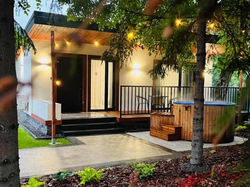 Die Unterkunft verfügt über Domki mit einem Balkon, einem Sitzbereich und einem Kabel Flachbild-TV. Jede Domki ist mit einer voll ausgestatteten Küchenzeile ausgestattet, die einen Kühlschrank und eine Herdplatte umfasst, sowie einem eigenen Badezimmer mit einer Dusche und einem Haartrockner.