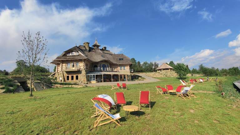 Das Hotel Wrzosowy Dwór - SPA in Skomielna Czarna bietet eine gemütliche Unterkunft inmitten einer malerischen Umgebung. Hier können Sie sich entspannen und die Annehmlichkeiten wie das Restaurant, die Bar, die Sauna und den Whirlpool genießen. Das kontinentale Frühstück sorgt für einen guten Start in den Tag, während Aktivitäten wie Wandern die Möglichkeit bieten, die schöne Natur der Umgebung zu erkunden.