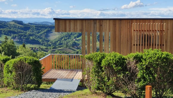 Panoramatherapie auf höchstem Niveau Der Wurzenberg nahe Gamlitz: einer jener Plätze, an denen man nicht aufhört, sich um die eigene Achse zu drehen, weil der Ausblick in jede Himmelsrichtung fantastisch ist. Die moderne Architektur unseres Hauses ist transparent und offen – wie ein Aussichtsturm an einem der höchsten Punkte des südsteirischen Weinlandes. In einem der kleinsten Hotels der Welt finden Sie absolute Ruhe und Erholung und rundherum unberührte Natur. Unser Motto lautet: Wir verwöhnen Sie genau dann, wann Sie es möchten. Zum Frühstück und nach Wunsch. Die übrige Zeit gehört ganz Ihnen – einfach zum Wohlfühlen und Genießen! Wir freuen uns auf Sie, Ihre Familie Lippnegg