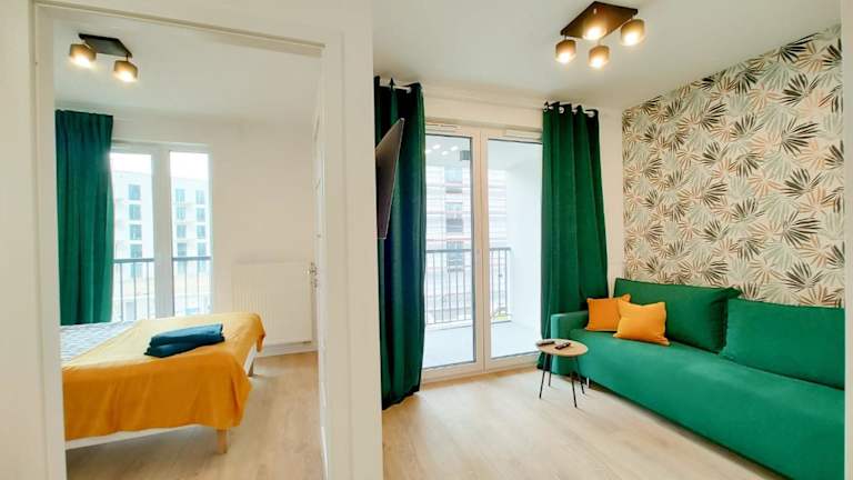 Katowice Centrum Apartament 98 Nova Mikołowska bietet eine Unterkunft mit kostenlosem WLAN und einem Privatparkplatz. Die Ferienwohnung verfügt über einen Balkon, ein Schlafzimmer, ein Wohnzimmer sowie eine gut ausgestattete Küche. Handtücher und Bettwäsche werden bereitgestellt, und es gibt einen Kinderspielplatz.
