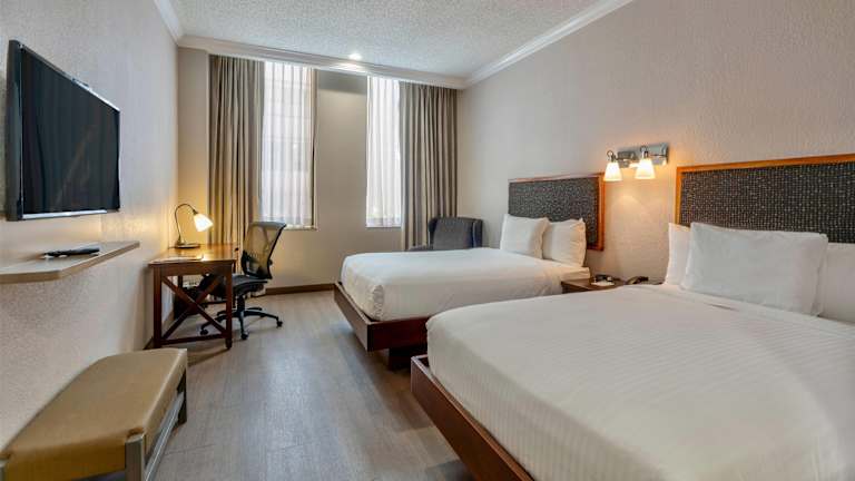 Die Zimmer im Wyndham Garden Baronne Plaza sind komfortabel und stilvoll eingerichtet. Jedes Zimmer verfügt über einen Flachbild-TV, einen Schreibtisch, einen Sitzbereich und kostenfreie Pflegeprodukte. Die originale Art-déco-Architektur des Hotels schafft eine einzigartige Atmosphäre, die Ihren Aufenthalt noch angenehmer macht.