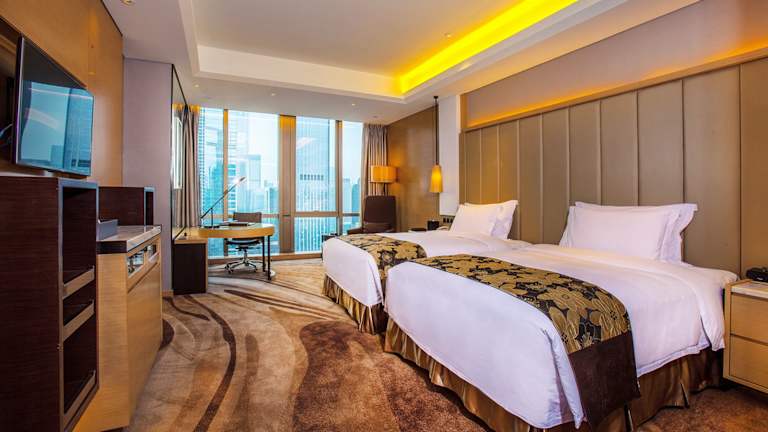 Das Wyndham Grand Shenzhen bietet 232 Zimmer, die sich über 34 Etagen erstrecken und bequem mit dem Aufzug erreichbar sind. Die Zimmer sind klimatisiert und verfügen über eine Minibar, einen Essbereich mit Kühlschrank und Wasserkocher sowie ein eigenes Badezimmer mit Dusche oder Badewanne und Haartrockner. Einige Zimmer bieten einen herrlichen Blick auf die Stadt. Nichtraucherzimmer und rollstuhlgerechte Zimmer mit barrierefreiem Bad sind ebenfalls verfügbar. WLAN steht den Gästen kostenlos zur Verfügung.