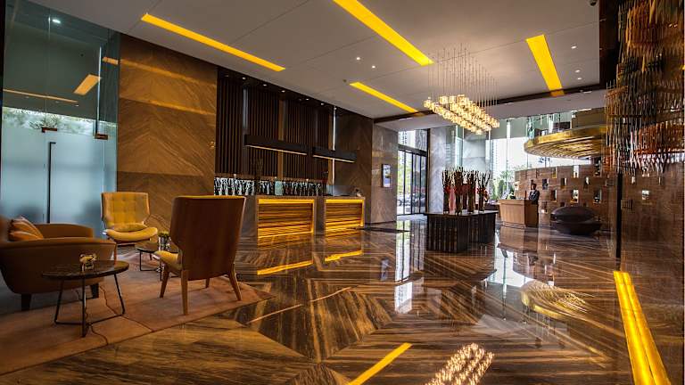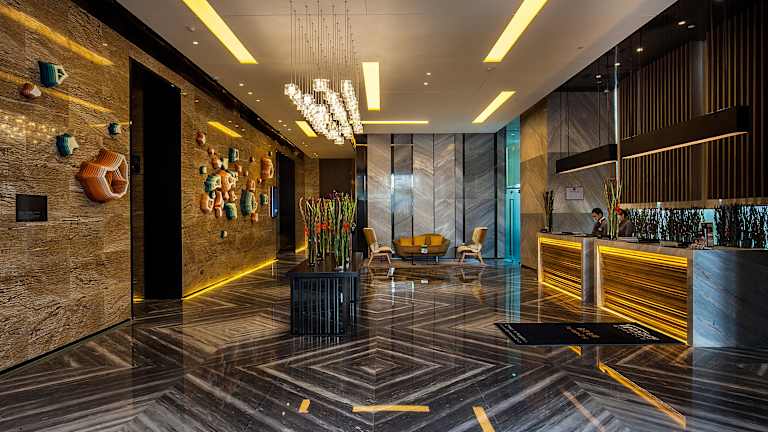 Das Wyndham Grand Shenzhen befindet sich im zentralen Geschäftsviertel Futian CBD und ist nur wenige Gehminuten vom U-Bahnhof Gangxia (Linie Luobao) entfernt. Das Messezentrum erreichen Sie in 10 Gehminuten und das Shenzhen Citizen Center in 5 Autominuten. Der Bahnhof Shenzhen ist 20 Fahrminuten und der internationale Flughafen Shenzhen 40 Fahrminuten entfernt.
