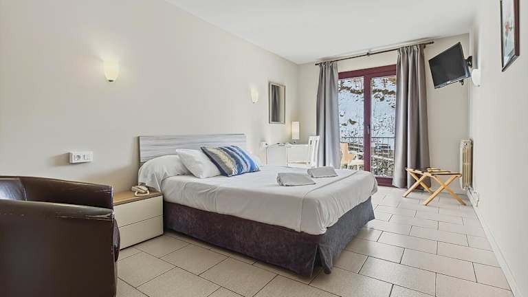 Die Zimmer sind mit Heizung, Balkon oder Terrasse, Doppelbett und Sofabett ausgestattet. Zustellbetten sind auf Anfrage verfügbar. Zur Zimmerausstattung gehören ein Safe, Direktwahltelefon, TV mit Satelliten-/Kabelempfang und kostenfreies WLAN. Die Badezimmer sind mit Dusche und Badewanne sowie einem Haartrockner eingerichtet. Zusätzlich werden Familien- und Nichtraucherzimmer angeboten.