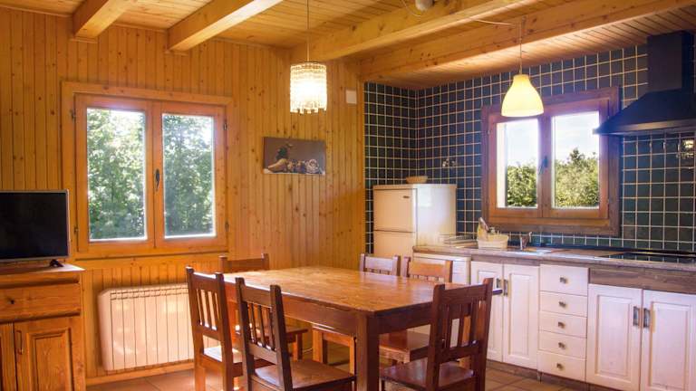 Die Chalets im Xalet de Prades sind im nordischen Landhausstil eingerichtet und bieten eine gemütliche Atmosphäre. Jedes Chalet ist beheizt und verfügt über einen Wohn- und Essbereich mit Schlafsofa und Kabel-TV. Die voll ausgestattete Küche mit Waschmaschine, Kühlschrank, Mikrowelle und Geschirrspüler ermöglicht es den Gästen, ihre Mahlzeiten bequem selbst zuzubereiten.