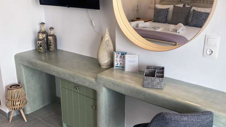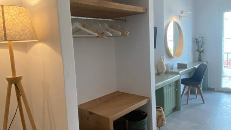 Die Apartments im Xenios Zeus Apartments sind komfortabel und bieten alles, was Sie für einen angenehmen Aufenthalt benötigen. Jedes Apartment verfügt über einen eigenen Balkon, auf dem Sie die frische Meeresbrise genießen können. Die klimatisierten Apartments sind mit einem TV und einem Essbereich ausgestattet, sodass Sie Ihre Mahlzeiten bequem im Apartment einnehmen können. Eine Küchenzeile mit Kühlschrank ist ebenfalls vorhanden, falls Sie selbst kochen möchten. Das Badezimmer ist modern und verfügt über eine Dusche, kostenfreie Pflegeprodukte und einen Haartrockner.