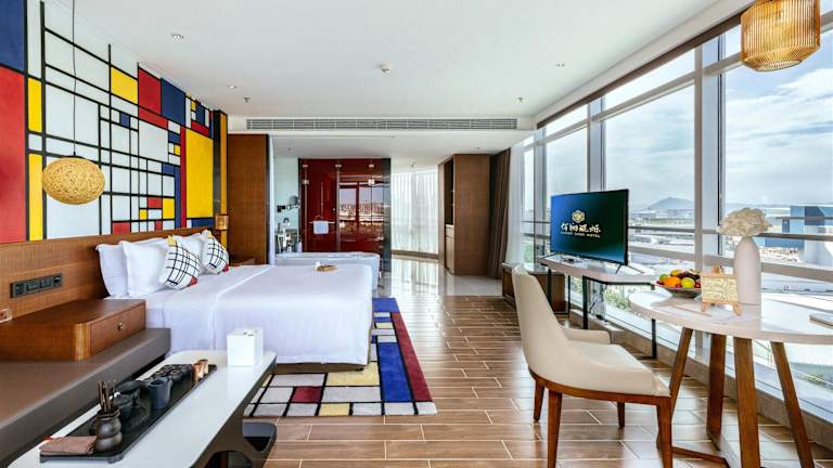 Die Gästezimmer sind mit Klimaanlage, Flachbild-TV mit Kabelkanälen, Kühlschrank, Wasserkocher, Dusche, kostenlosen Pflegeprodukten und Schreibtisch ausgestattet. Alle Zimmer verfügen über Bettwäsche und Handtücher. Darüber hinaus sind die Zimmer mit einem Safe ausgestattet, und ausgewählte Zimmer bieten Seeblick.