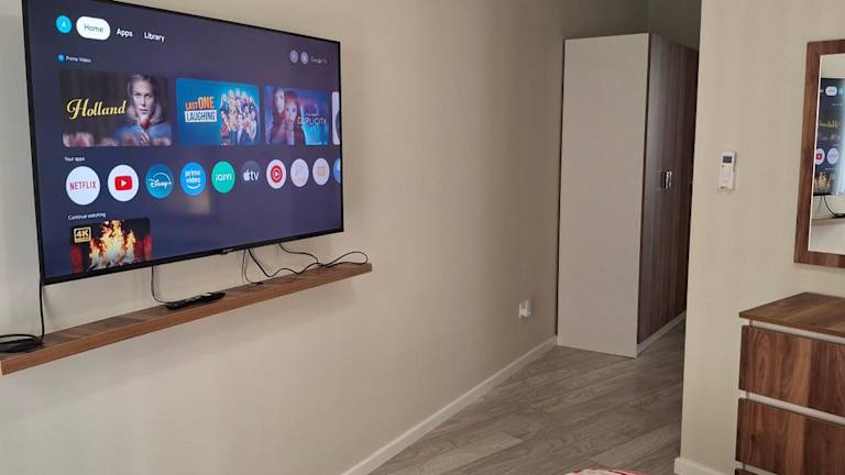 Die Ferienwohnung verfügt über zwei Schlafzimmer und ein Badezimmer. Zu den Annehmlichkeiten gehören Bettwäsche, Handtücher, ein Flachbild-TV, eine voll ausgestattete Küche und eine Terrasse mit Meerblick. WLAN und Parkplatz sind ebenfalls verfügbar.