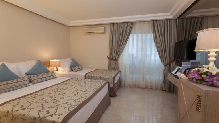 Alle Zimmer verfügen über sat-TV, W-LAN, Minibar, Safe, Direktwahl-Telefon, Klimaanlage, Balkon, Bad mit Duschkabinen, WC und Föhn. Ingesamt 71 Zimmer und 175 Betten Kapazität.