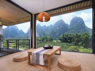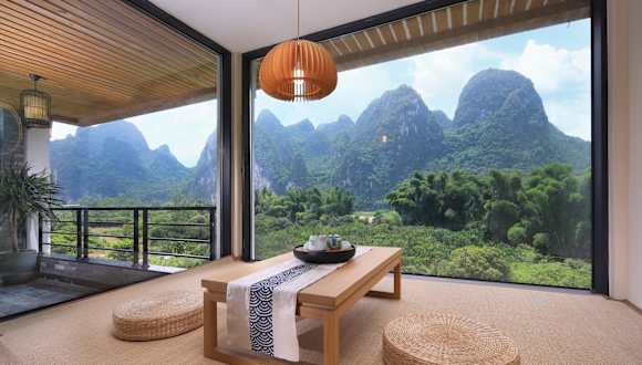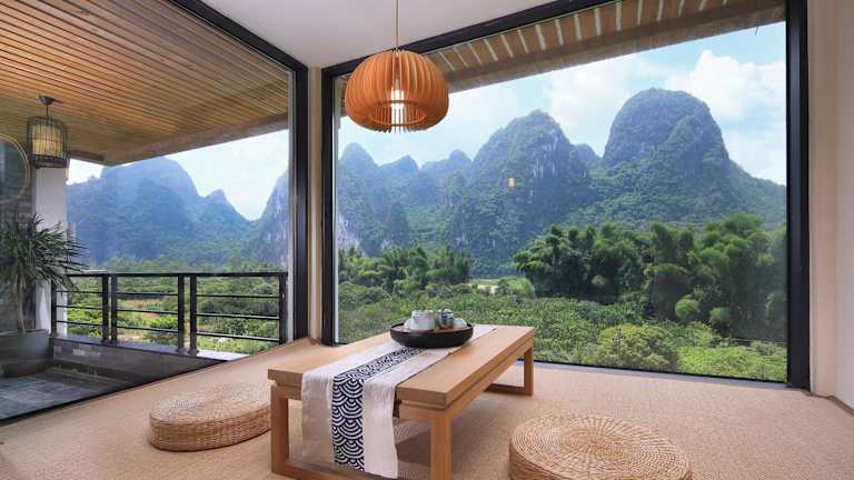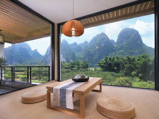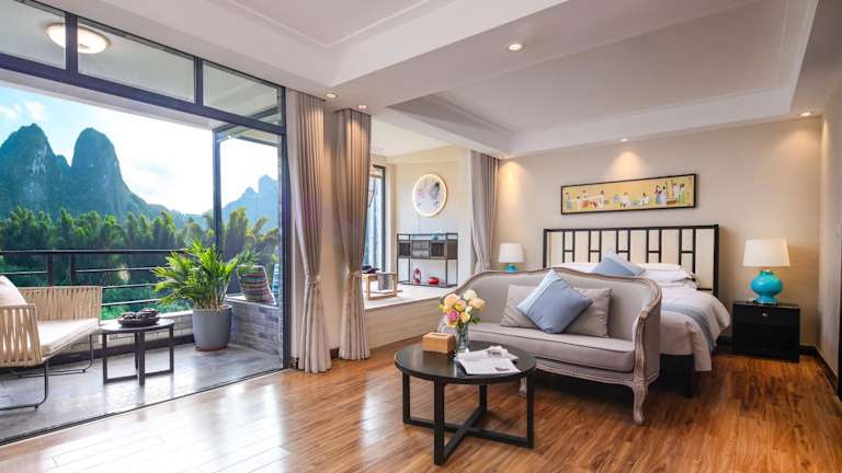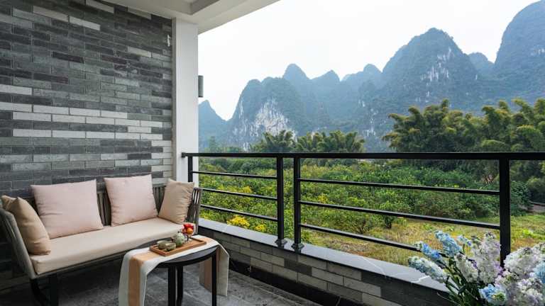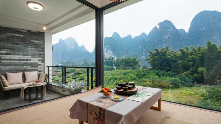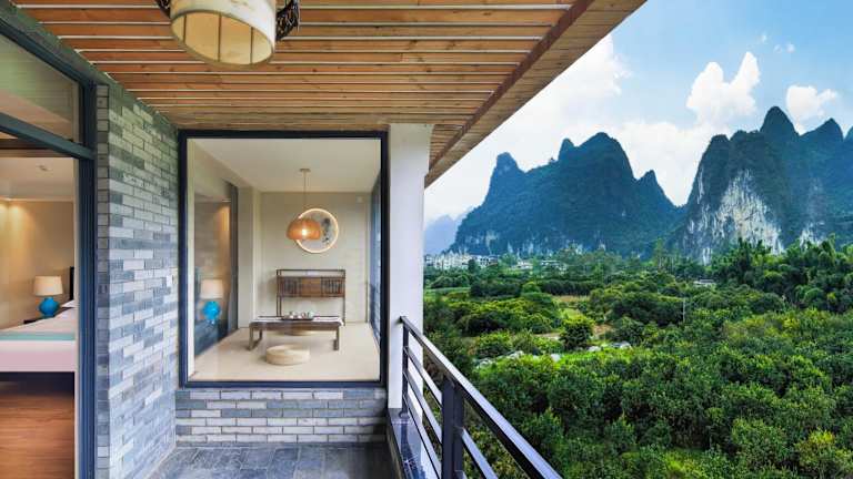 Das Li-river Island Resort Xingping Yangshuo liegt nur 300 Meter vom Ufer des malerischen Li Jiang entfernt. Es ist von üppigen Pampelmusenwäldern umgeben und befindet sich am Fuße des Yuanbao-Berges, der auf dem 20-Yuan-Schein abgebildet ist.