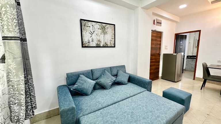 Yepplo Service Apartments - KOLKATA bietet klimatisierte Unterkünfte mit kostenlosem WLAN und Zugang zu einer Terrasse. Die Apartments verfügen über einen Balkon mit Stadtblick.