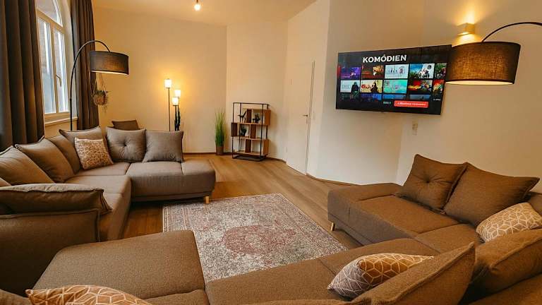 YFB-170m2 Apartment bietet Übernachtungsmöglichkeiten für bis zu 15 Personen. Die moderne Ferienwohnung ist mit einer Terrasse, einer voll ausgestatteten Küche, Wohnzimmer und mehreren Schlafzimmern ausgestattet. Es gibt eine rund um die Uhr besetzte Rezeption. Generell liegt der Fokus auf Familienfreundlichkeit, und es sind spezielle Angebote für Kinder vorgesehen. Zudem wird auf eine Nichtraucherumgebung geachtet und Haustiere sind nicht gestattet.