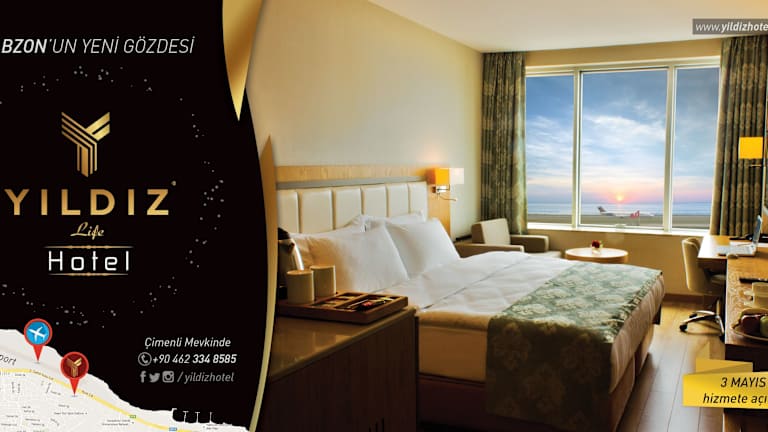 Das Yıldız Life Hotel in Trabzon bietet seinen Gästen einen komfortablen Aufenthalt in unmittelbarer Nähe zum Schwarzen Meer. Die Zimmer sind gemütlich eingerichtet und bieten teilweise einen herrlichen Blick auf das Meer oder den Garten. Das Hotel verfügt über ein Restaurant, in dem Sie Ihre Mahlzeiten genießen können, sowie über kostenfreie Privatparkplätze. Die günstige Lage ermöglicht es Ihnen, die Naturschönheiten und historischen Sehenswürdigkeiten von Trabzon bequem zu erkunden.