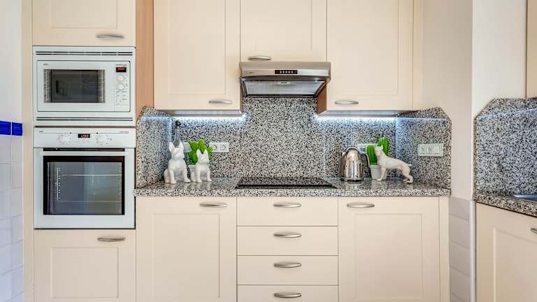 Die Ferienwohnung umfasst 2 Schlafzimmer und 3 Badezimmer. Zur Ausstattung gehören Bettwäsche, Handtücher, ein Flachbild-TV und ein Essbereich. Die voll ausgestattete Küche ermöglicht eine unabhängige Selbstversorgung. Zudem bietet die Terrasse einen Blick auf das Meer.
