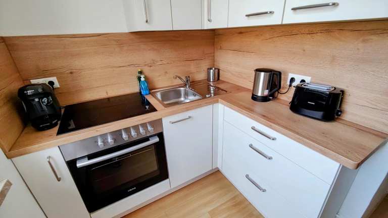 Die Ferienwohnung umfasst ein Schlafzimmer, ein Wohnzimmer und eine voll ausgestattete Küche mit Kühlschrank und Kaffeemaschine. Des Weiteren steht ein Badezimmer mit Dusche und Haartrockner zur Verfügung. Handtücher und Bettwäsche werden bereitgestellt.