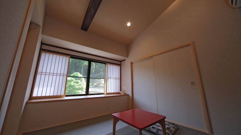 Die Zimmer sind im japanischen Stil gestaltet und verfügen über traditionelle Futonbetten und Tatamiböden aus gewebtem Stroh. Jedes Zimmer ist zudem mit einem Flachbild-TV, Klimaanlage, sowie Gemeinschaftsbädern und -WCs ausgestattet. Kostenfreies WLAN ist im gesamten Hotel verfügbar.