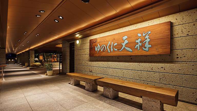 Die Zimmer im Yunokuni Tensyo sind klimatisiert und im japanischen Stil eingerichtet, mit Tatamimatten und Futonbetten. Zur Standardausstattung gehören ein Flachbild-TV, ein Kühlschrank, ein Wasserkocher sowie japanische Yukata-Bademäntel. Rollstuhlgerechte Zimmer und Familienzimmer sind ebenfalls verfügbar.