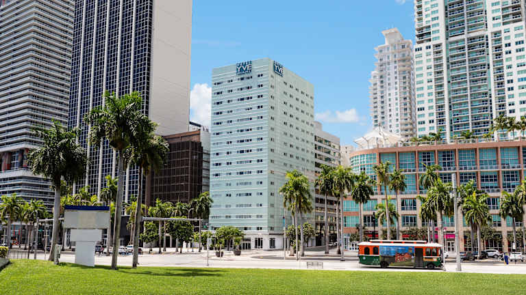Das Hotel befindet sich in einer ausgezeichneten Lage am Biscayne Boulevard mit herrlichem Blick auf die Bucht. Es liegt gegenüber dem Hafen von Miami und eignet sich besonders gut für Gäste, die vor oder nach einer Kreuzfahrt übernachten möchten. In unmittelbarer Nähe finden Sie öffentliche Verkehrsmittel, Bars und Restaurants. Einkaufsmöglichkeiten sind ebenfalls in etwa 3 km Entfernung zu erreichen. Die Stadt Coral Gables ist ca. 7 km entfernt und der Strand von Miami ist etwa 8 km entfernt.