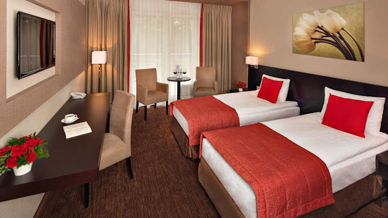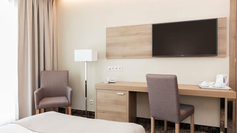 Die Zimmer im Z-Hotel Business & Spa sind klimatisiert und bieten ein modernes Design mit dunklen Holzmöbeln. Jedes Zimmer verfügt über einen Flachbild-Sat-TV, kostenfreies WLAN, einen Wasserkocher, eine Minibar, einen Schreibtisch, einen Sitzbereich und einen Safe. Die schallisolierten Zimmer sorgen für einen ruhigen und erholsamen Schlaf.
