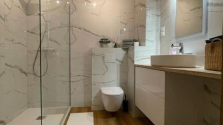 Die Küchenzeile der Ferienwohnung ist vollständig ausgestattet und verfügt unter anderem über einen Kühlschrank und eine Kaffeemaschine, wodurch die Gäste die Möglichkeit haben, ihre eigenen Mahlzeiten zuzubereiten.