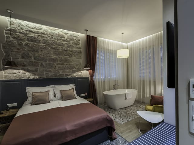 Das Zadera Accommodation befindet sich in der Altstadt von Zadar, nur wenige Gehminuten von der berühmten Meeresorgel und dem Gruß an die Sonne entfernt. Diese einzigartigen Sehenswürdigkeiten sind beliebte Anlaufpunkte für Touristen und bieten einen spektakulären Blick auf das Meer. In der Nähe des Hotels befindet sich auch die Kirche der hl. Mutter der Genesung, die in nur einer Gehminute erreicht werden kann. Die Kathedrale St. Anastasia und das Forum Romanum sind ebenfalls nur 400 m entfernt, so dass Gäste die reiche Geschichte und Kultur von Zadar erkunden können. Der Flughafen Zadar ist nur 13 km entfernt und kann bequem mit dem Flughafentransfer des Hotels erreicht werden.