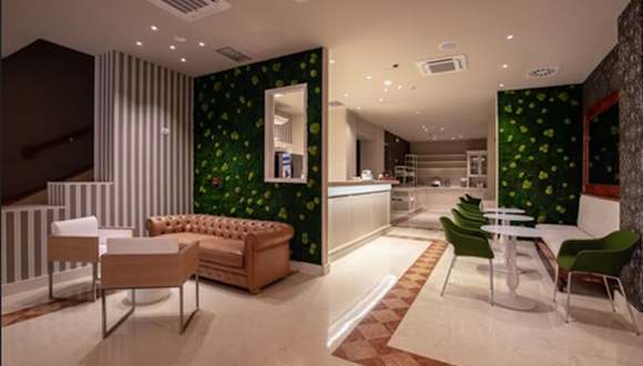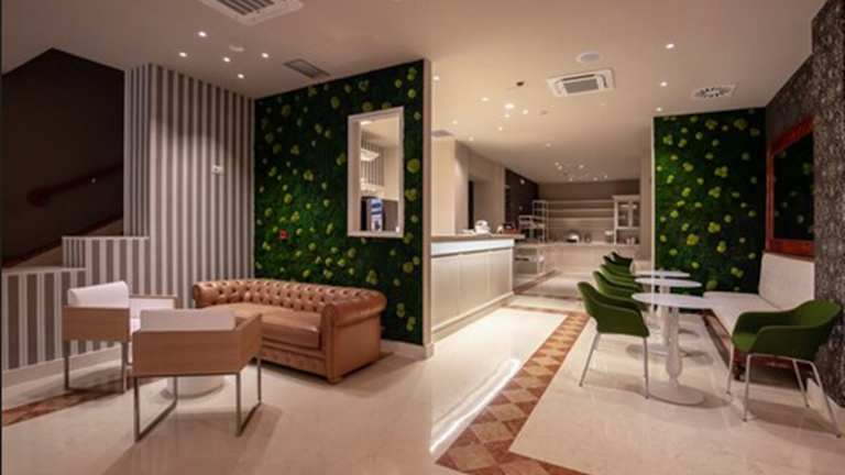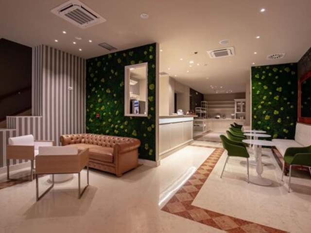 Die gastronomischen Einrichtungen des Hotels umfassen ein Café und eine Bar. Übernachtung mit Frühstück kann gebucht werden, wobei auch spezielle Diätgerichte und Verpflegungsangebote bereitgestellt werden.