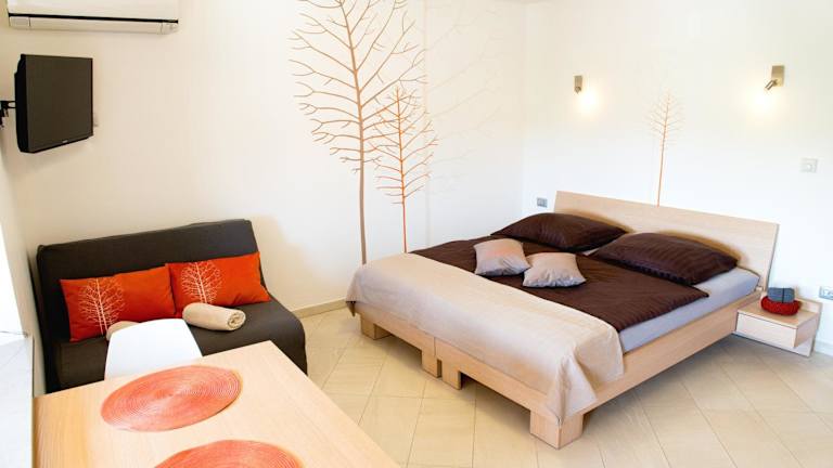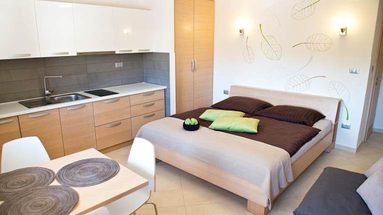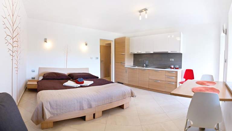 Die Studios im Hotel Apartmaji Zenja sind elegant eingerichtet und bieten modernen Komfort. Jedes Studio verfügt über eine Küchenzeile mit einem Essbereich, Sofas und einen TV. Das eigene Bad ist mit einer Dusche, einem Haartrockner und Handtüchern ausgestattet. Alle Studios haben Zugang zu einem Gemeinschaftsbalkon, auf dem Sie die frische Luft und die Aussicht genießen können.