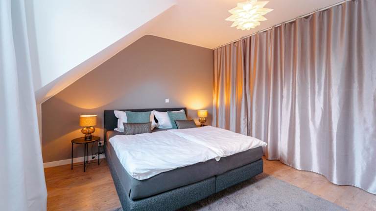 Die Ferienwohnung umfasst ein Schlafzimmer, eine voll ausgestattete Küche mit Kühlschrank und Geschirrspüler, ein Badezimmer mit Dusche sowie einen Flachbild-TV und einen Sitzbereich. Handtücher und Bettwäsche sind vorhanden.