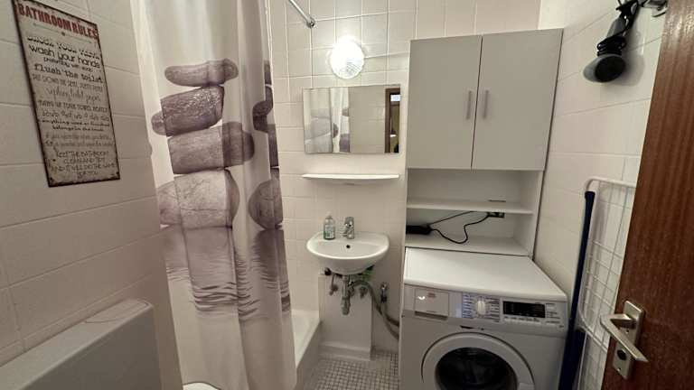 Die Ferienwohnung ist ausgestattet mit 2 Schlafzimmern, einer Küche, die mit einem Kühlschrank und Geschirrspüler eingerichtet ist, sowie einem Badezimmer mit Dusche, Haartrockner und Waschmaschine. Handtücher und Bettwäsche werden bereitgestellt.