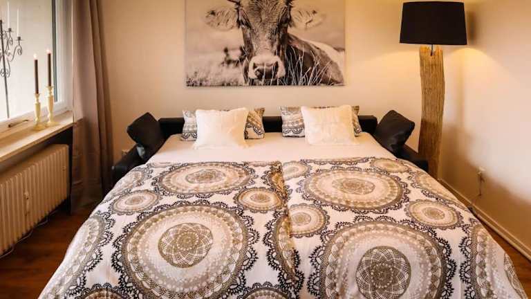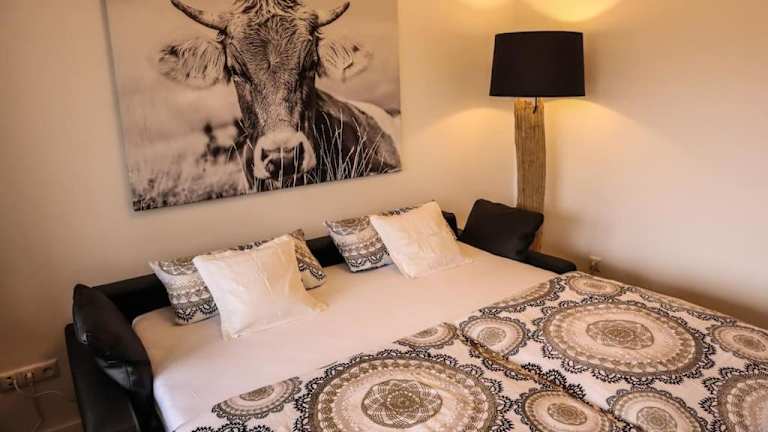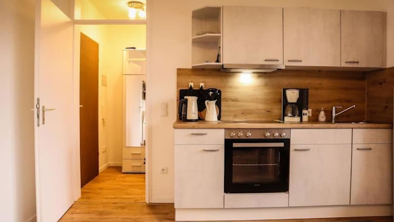 Die Ferienwohnung umfasst ein Schlafzimmer und eine Küchenzeile, die mit einem Kühlschrank und einem Ofen ausgestattet ist. Zur Einrichtung gehören ein Flachbild-TV, ein Sitzbereich und ein Badezimmer mit Dusche. Handtücher und Bettwäsche werden bereitgestellt. Zudem ist die Unterkunft als Nichtraucherraum ausgewiesen.
