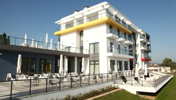 Ein sehr attraktives Hotel, das seinen Gästen eine luxuriöse Stimmung und den besten Service direkt am Ufer des wundervollen Flusses Una, direkt an der Grenze mit Republik Kroatien, bietet. Helle, gemütliche und breite Zimmer mit dem Blick auf den Fluss und die Stadt und alles, was Ihre Urlaubstage unschätzbar macht, sind der wahre Grund, warum viele Gäste in dieses Hotel zurückkehren. Das opulente Zepter Hotel des modernen Designs befindet sich im direkten Zentrum von Kozarska Dubica, am direkten Ufer des Flusses Una. Das Hotel bringt mit seinem Aussehen der Schönheit und dem Reichtum der Stadt bei und mit dem Inhalt und Service stellt es einen erstklassigen Dienstleistungskomplex dar, der bei der Kategorisierung mit 4 Sternen bewertet wurde. Dieses repräsentative Objekt ist nur eines der Geschenke von Philip Zepter an seine Heimatstadt, mit dem Wunsch, in die Gemeinde Kozarska Dubica zu investieren, wo er seine Kindheit verbracht hat. Die Architektur und die Innenraumlösung des Hotels hatte die Einzigartigkeit zum Ziel, aber auch die Erkennbarkeit nach allen bedeutenden Parametern für ein anderes Ambiente. Die Synthese der Differenzen ist sichtbar auch in anderen Segmenten, die Fusion von natürlicher Umgebung und renommiertem Design, dem Minimalismus und der Wärme, der Seriosität und der Verspieltheit. Der größere Teil der Fassade ist aus weißem Eternit und die surreale Weiße wird durch gelbe, rote und graue Segmente gebrochen, die vom Mondrian beeinflusst wurden und die zur selben Zeit das Wahrzeichen des Hotels geworden sind und erstrecken sich durch den ganzen Innenraum in Form von Details und Konturen.