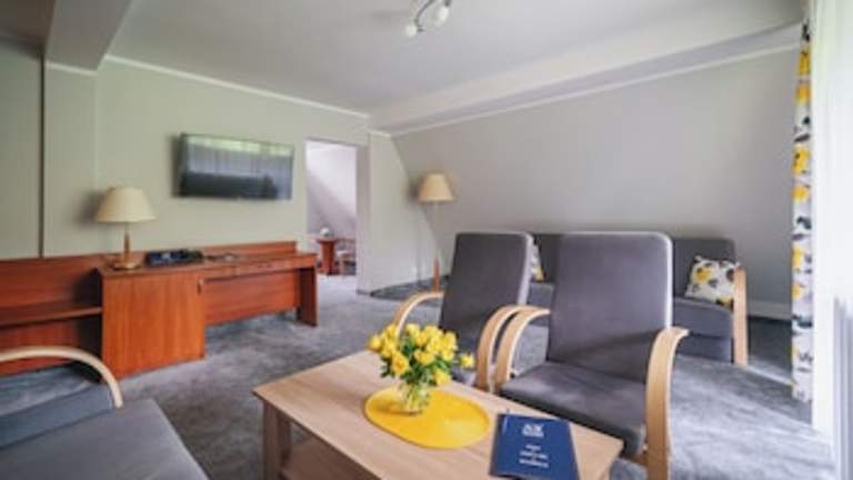 Die Zimmer sind mit einem eigenen Bad und einem Schreibtisch ausgestattet. Viele der Zimmer verfügen zudem über einen Balkon mit Blick auf die Tatra.