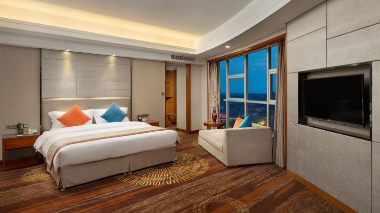 Die klimatisierten Zimmer sind mit einem Schreibtisch, einem Wasserkocher, einem Kühlschrank, einer Minibar, einem Safe und einem Flachbild-TV ausgestattet. Jedes Zimmer verfügt über ein eigenes Badezimmer mit Dusche sowie einen Kleiderschrank.