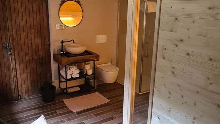 Das Zidanica Žagar in Dolenjske Toplice ist eine komfortable und klimatisierte Unterkunft, die mit kostenfreiem WLAN und einer Terrasse ausgestattet ist. Hier können Sie inmitten einer malerischen Umgebung Aktivitäten wie Wandern, Skifahren und Radfahren genießen. Das Ferienhaus bietet ein gemütliches Ambiente mit einem Schlafzimmer, einem Wohnzimmer und einer gut ausgestatteten Küche. Entspannen Sie sich in der Sauna des Hauses oder nutzen Sie den Grill und den Garten. Der Flughafen Ljubljana ist 90 km entfernt, und die Unterkunft bietet einen Flughafentransfer gegen Gebühr an.