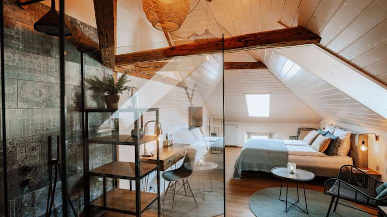 Die Zimmer in der Zimmerei sind komfortabel und bieten alles, was Sie für einen angenehmen Aufenthalt benötigen. Jedes Zimmer verfügt über eine Kaffeemaschine für Ihren morgendlichen Koffeinschub. Die privaten Badezimmer sind mit einer Dusche und einem Haartrockner ausgestattet. Kostenloses WLAN steht Ihnen in allen Zimmern zur Verfügung. Einige Zimmer bieten auch eine Terrasse, auf der Sie die frische Luft und den Blick auf die Stadt genießen können. Bettwäsche und Handtücher werden gestellt, so dass Sie sich um nichts kümmern müssen.