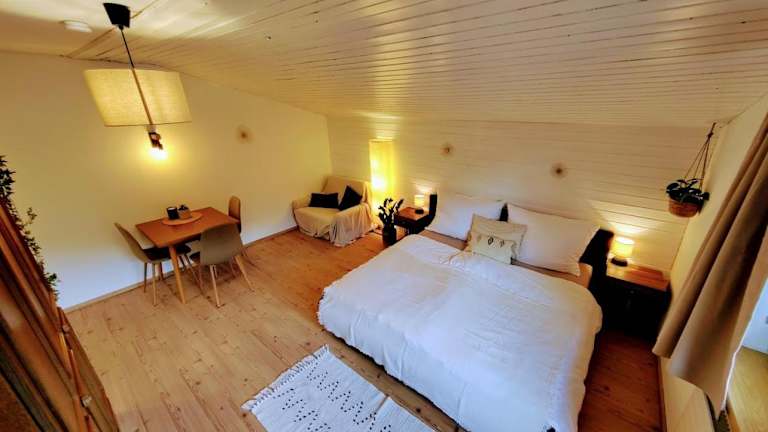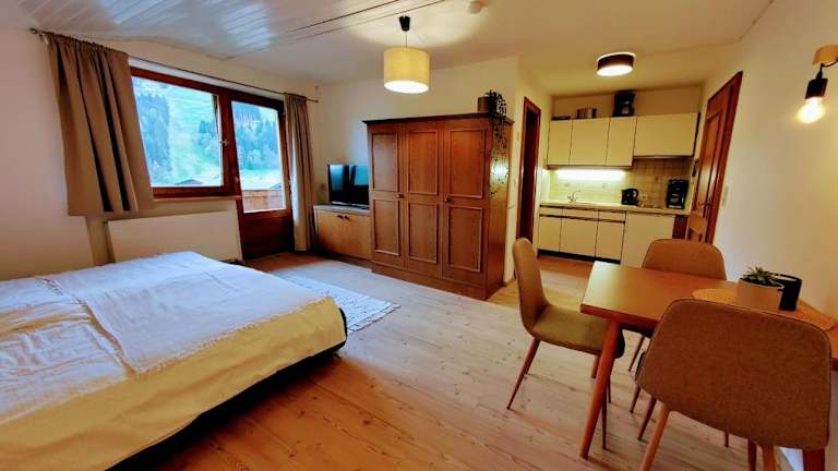Die Ferienwohnung ist mit 1 Schlafzimmer, einer Küchenzeile mit Kühlschrank und Herdplatte sowie einem Badezimmer mit Badewanne ausgestattet. Handtücher und Bettwäsche werden bereitgestellt.