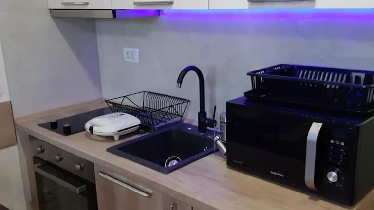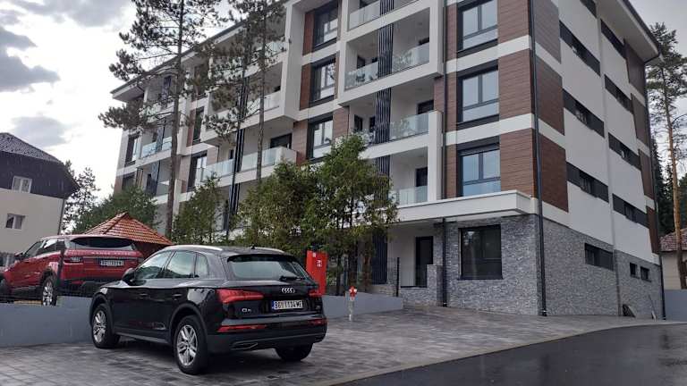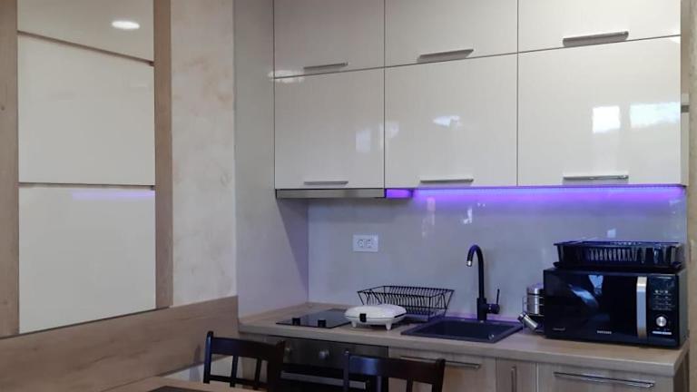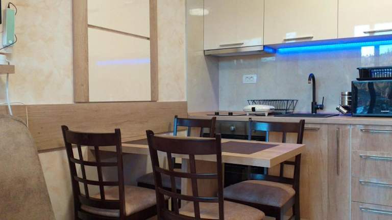 Das Apartment im Zlatibor apartmani centar ist geräumig und bietet einen Balkon mit Stadtblick. Es verfügt über einen Flachbild-Sat-TV und eine gut ausgestattete Küche mit Kühlschrank, Backofen, Mikrowelle und Haartrockner. Das Apartment bietet somit alle Annehmlichkeiten, die man für einen komfortablen Aufenthalt benötigt.