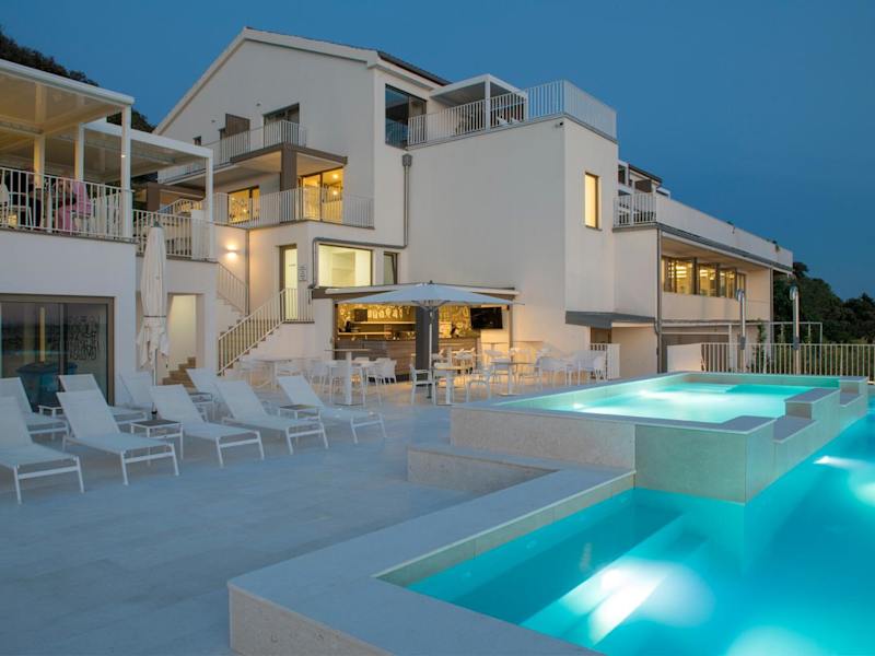 Die Zlatni Zalaz Apartments in Supetarska Draga bieten ihren Gästen eine ideale Unterkunft für einen erholsamen Urlaub. Mit einem saisonalen Pool, einer Sonnenterrasse und der Nähe zum Strand Kozica können Sie hier die Sonne und das Meer genießen. Die Zimmer sind modern und komfortabel eingerichtet und verfügen über Annehmlichkeiten wie Klimaanlage und Flachbild-Sat-TV. Einige der Wohneinheiten bieten zudem einen Balkon oder eine Terrasse mit einem Essbereich im Freien. Das hauseigene Restaurant und die Cocktailbar sorgen für kulinarische Genüsse. In der Umgebung gibt es viele Sehenswürdigkeiten zu entdecken, darunter der Paradise Beach San Marino und die Altstadt von Rab. Parkplätze stehen den Gästen zur Verfügung, sodass sie die Umgebung bequem mit dem Auto erkunden können.