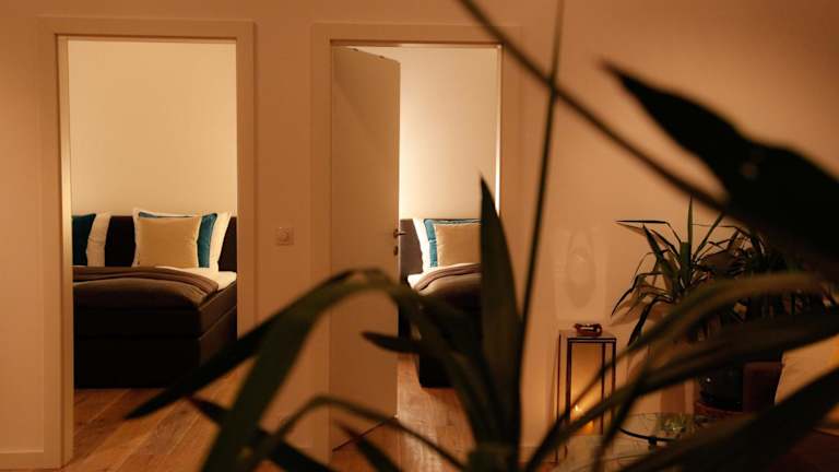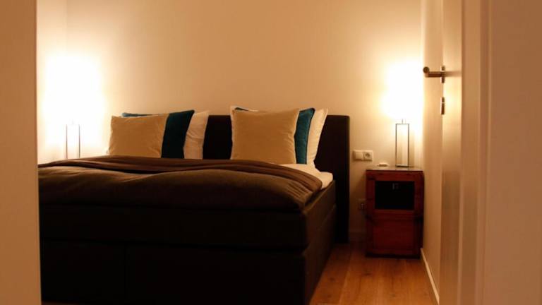 Die Ferienwohnung umfasst zwei Schlafzimmer, ein Wohnzimmer, eine gut ausgestattete Küche mit Kühlschrank und Geschirrspüler sowie ein Badezimmer mit Dusche. Zur Ausstattung gehören Flachbild-TV, Handtücher und Bettwäsche.