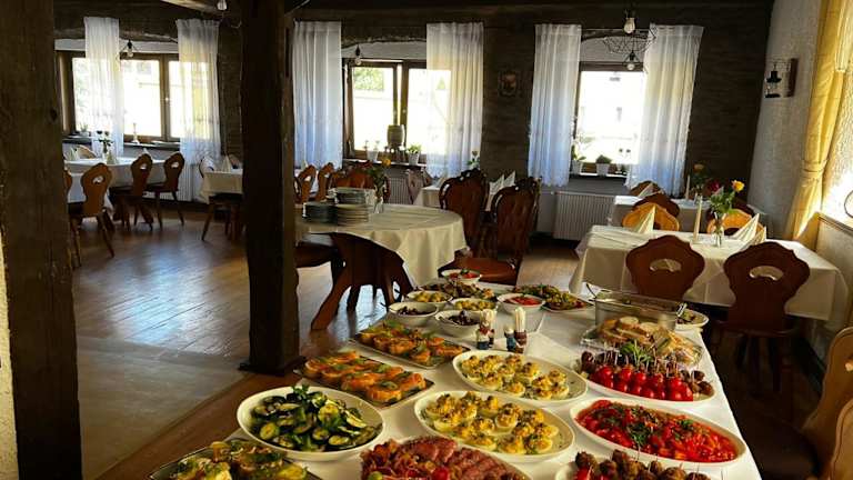 Genießen Sie köstliche Speisen im hoteleigenen Restaurant des Zum Goldenen Fass. Hier können Sie sich auf eine vielfältige Auswahl an Gerichten freuen und Ihren Gaumen verwöhnen lassen. Verbringen Sie angenehme Abende auf der Terrasse und genießen Sie das kulinarische Angebot des Hotels.