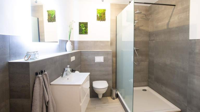 Die Ferienwohnung bietet zwei Schlafzimmer, eine voll ausgestattete Küche mit Kühlschrank und Geschirrspüler sowie ein Badezimmer mit Dusche und Haartrockner. Handtücher und Bettwäsche sind ebenfalls vorhanden. Die Unterkunft ist für Familien geeignet und umfasst Nichtraucherzimmer.