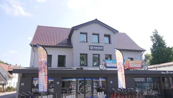 Die Unterkunft Zur Eiche befindet sich in Ahlbeck in der Region Usedom. In unmittelbarer Nähe befinden sich der Strand Ahlbeck und die Seebrücke Ahlbeck. Weitere Strände, wie der in Heringsdorf, sind ebenfalls in der Nähe.