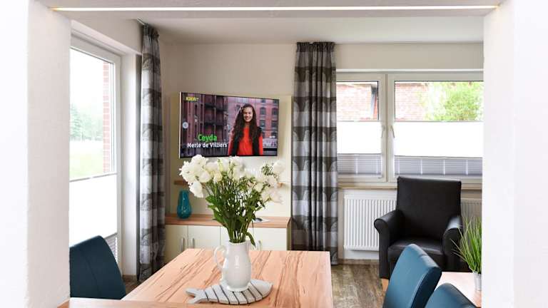Die Unterkunft Zur Möwe 1 befindet sich in der Nähe des Strandes Bensersiel, etwa 1 km entfernt. Sehenswürdigkeiten wie das Deutsches Sielhafenmuseum sind weniger als 17 km entfernt, während das Schlossmuseum Jever etwa 30 km entfernt liegt. Der Bahnhof Norddeich ist in 32 km und die Stadthalle Wilhelmshaven in 47 km zu erreichen. Der nächstgelegene Flughafen ist der Flughafen Bremen, der sich 130 km von der Unterkunft entfernt befindet.