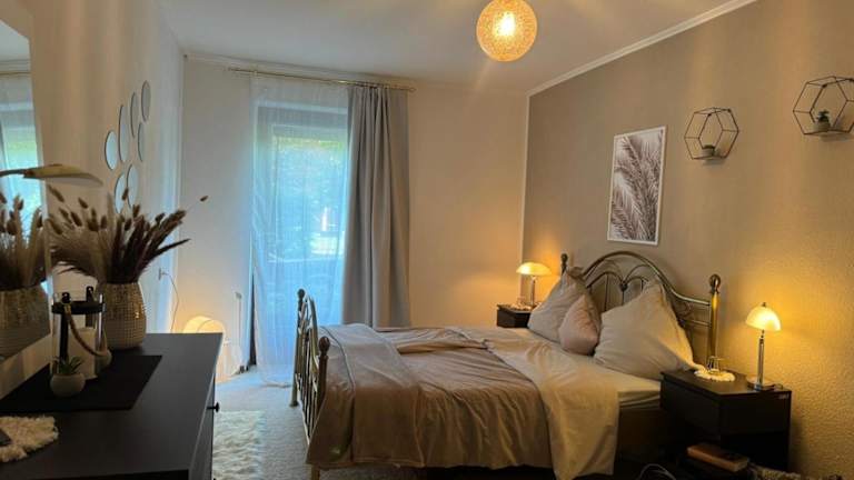 Die Ferienwohnung Zwei Zimmer Natur und Luxus Ferienwohnung mit Garten bietet eine entspannende Umgebung in Form eines Gartens und verfügt über Parkmöglichkeiten. Diese Unterkunft ideal für Natur- und Luxusliebhaber kombiniert Komfort mit einem naturnahen Ambiente.
