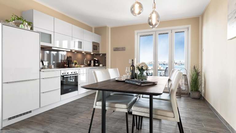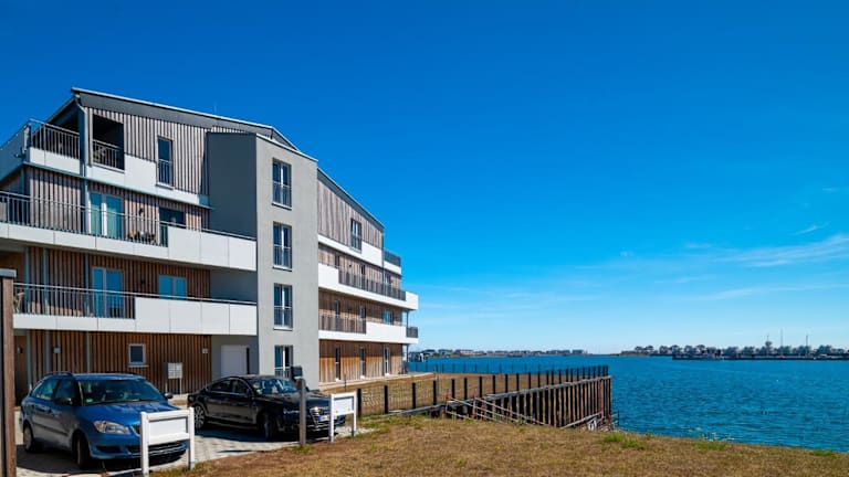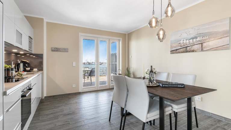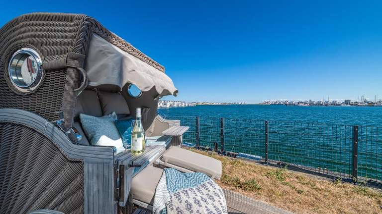 Die Unterkunft befindet sich in Olpenitz, in der Nähe des Weidefelder Strands, etwa 2,1 km entfernt. Die Lage bietet einen Blick auf das Hafenbecken und verfügt über einen Garten sowie kostenlosen Privatparkplatz.