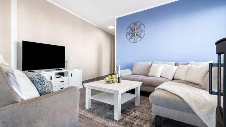 Die Ferienwohnung umfasst zwei Schlafzimmer, ein Wohnzimmer mit Kabel-TV, eine voll ausgestattete Küche mit Kühlschrank und Geschirrspüler sowie ein Badezimmer mit Haartrockner. Eine großzügige Dusche ist ebenfalls vorhanden.