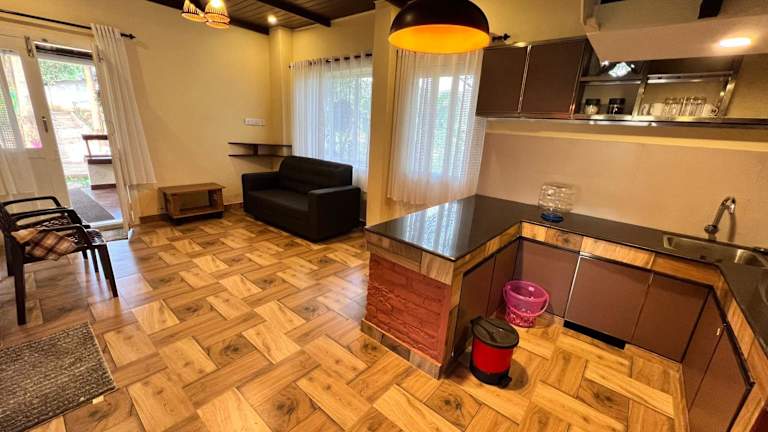 Die Unterkünfte im Zyamadhari Hotel sind mit einer voll ausgestatteten Küche ausgestattet, so dass Sie Ihre eigenen Mahlzeiten zubereiten können. Jedes Zimmer bietet Komfort und Bequemlichkeit für einen angenehmen Aufenthalt.