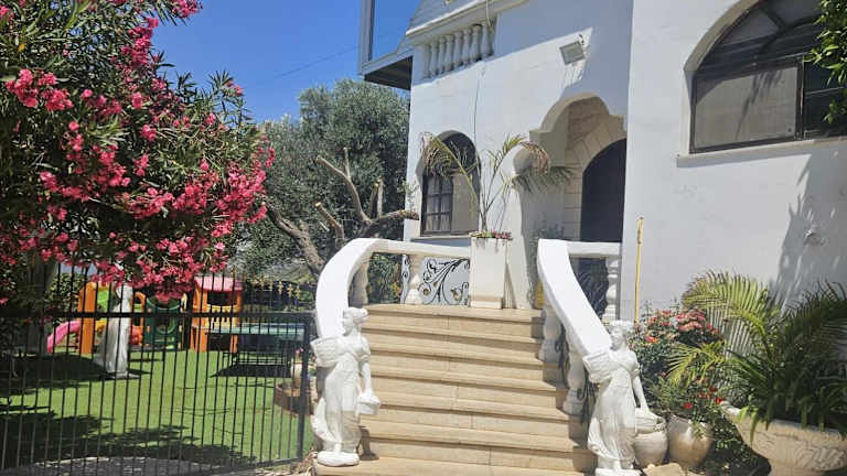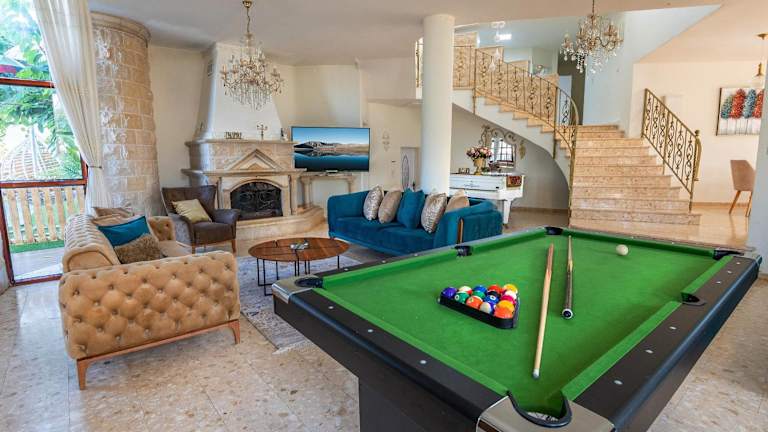 Die Villa Rish bietet eine traumhafte Unterkunft mit atemberaubendem Bergblick. Genießen Sie den Außenpool, die Gemeinschaftslounge und die Terrasse dieses wunderschönen Anwesens. Die Villa ist nur 18 km von den beeindruckenden Bahá'í-Gärten in Akko entfernt und bietet einen eigenen Pool, einen Garten, Grillmöglichkeiten sowie kostenfreies WLAN und Privatparkplätze. In der klimatisierten Villa finden Sie 4 Schlafzimmer, ein geräumiges Wohnzimmer und eine voll ausgestattete Küche. Die freundlichen Mitarbeiter an der 24-Stunden-Rezeption stehen Ihnen gerne mit praktischen Tipps zur Seite. Entdecken Sie die Schönheit der Umgebung und besuchen Sie das Stadttheater von Haifa oder die Altstadt von Akko. Der Flughafen Haifa ist nur 33 km entfernt.