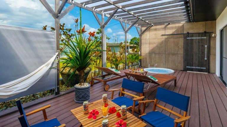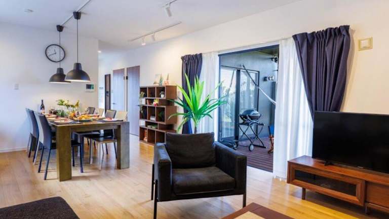 Verbringen Sie Ihren Aufenthalt im テラスでBBQ&サウナ&ジャグジー付き 築浅おしゃれな貸別荘 最大16名宿泊可能 Cottage Uruma in Uruma und genießen Sie eine moderne und stilvolle Villa mit einer Vielzahl von Annehmlichkeiten. Mit einem Garten, kostenfreiem WLAN und kostenlosem Parkplatz bietet diese 4-Zimmer-Villa alles, was Sie für einen komfortablen Aufenthalt benötigen. Die nahe gelegenen Strände und Sehenswürdigkeiten machen diesen Ort zu einem idealen Ausgangspunkt, um die Umgebung zu erkunden.